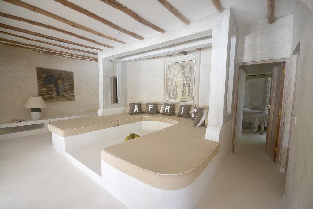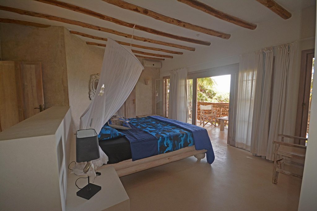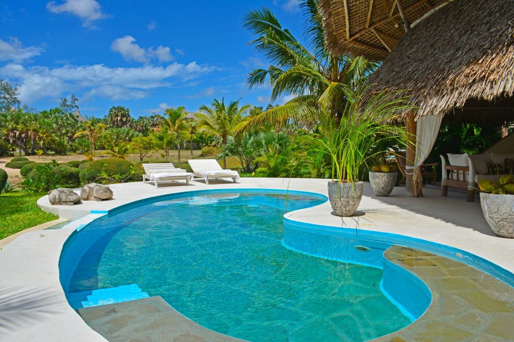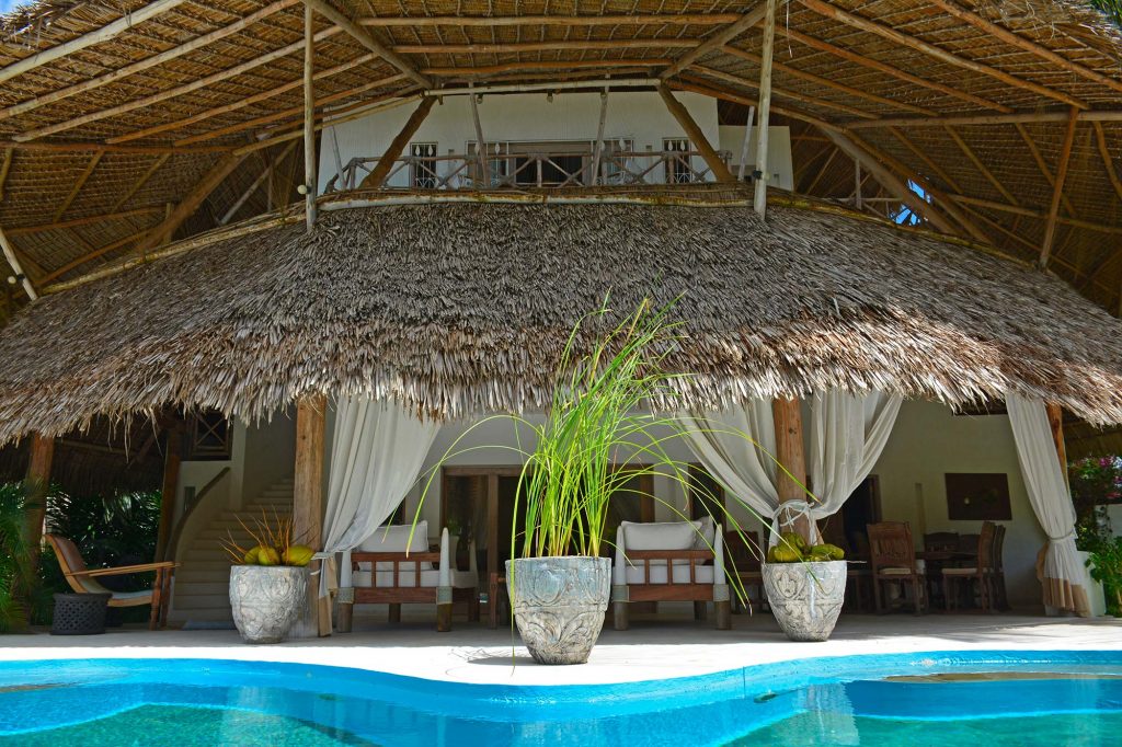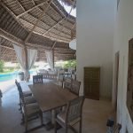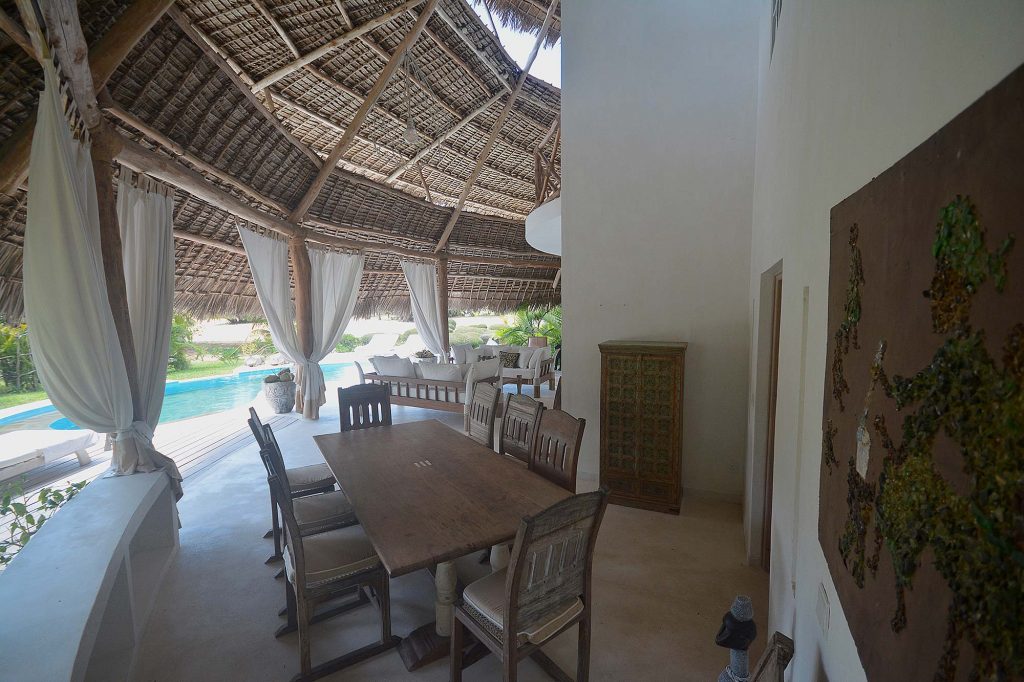 It overlooks the dunes of Malindi beach and has a cool outdoor patio with dining area, living area and solarium on the private pool.